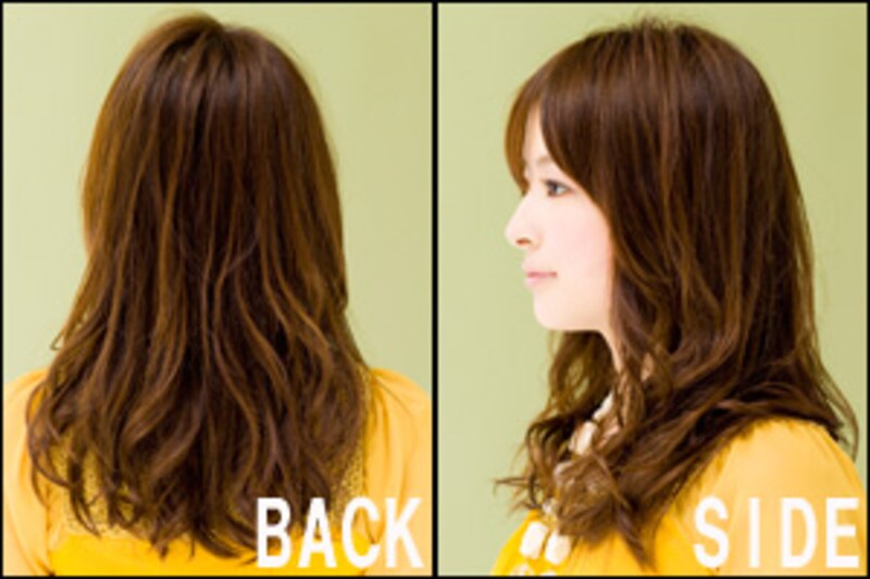 | このヘアスタイルのSIDE&BACK。ミックスウエーブで作る、やさしさのあるくつろいだ雰囲気が魅力。 |