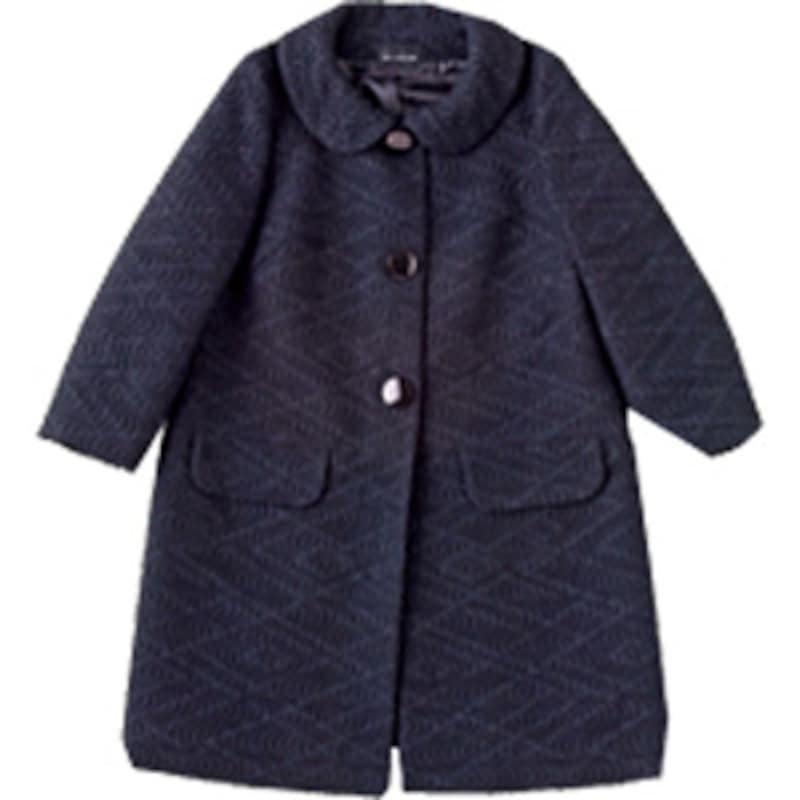 | 織りが入った生地の黒コート。シンプルに見えてこだわりがあるところがポイント。そでも短めの今風ライン。 コート46,200円/メルローズ |