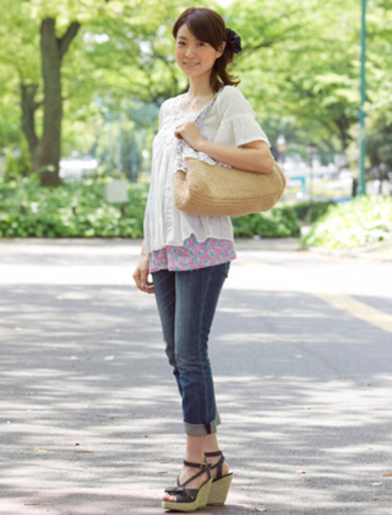 この春、ワンピース自体も、ウエストをベルトでマークするスタイルが流行っていたり、ボリュームを抑えたデザインが旬になってきています。スキニーデニムの着こなしも、それと同じように、よりすっきりとしたスタイリングへと変わってきています。デニムに合わせるチュニックやワンピースの丈も、短めな方なものの方が、今風。そして、ネックレスをプラスするなど、より上半身の高い位置にポイントを持ってくると、よりスタイルアップできます。