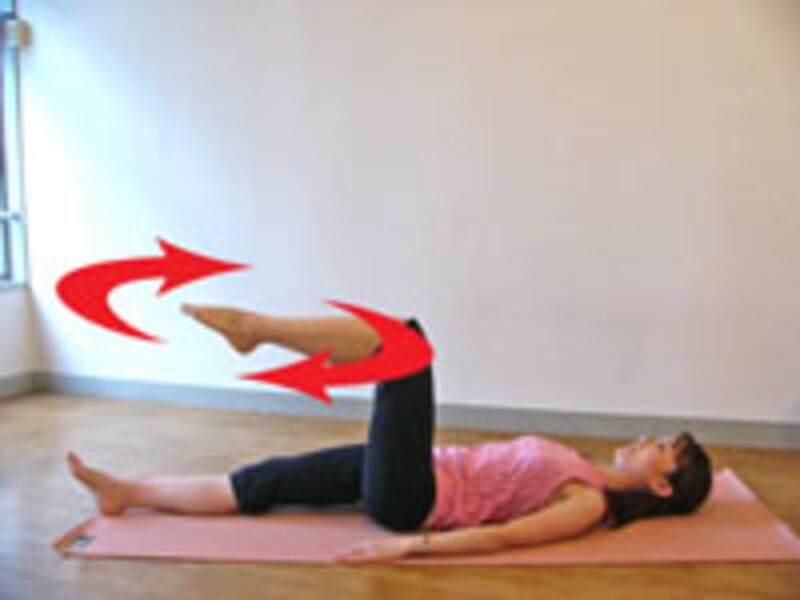 スネと床は平行のまま、股関節でゆっくりクルクルと10回ほど円を描く。