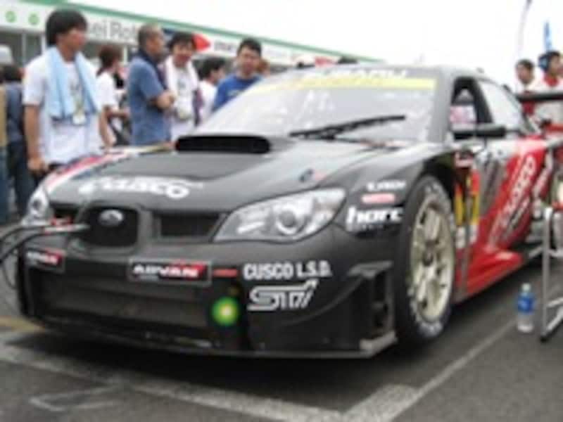 | GT初のAWD化を施し、菅生でいきなりの速さを見せたクスコ・スバル・インプレッサ。4ドアマシンながら特認車両として参加が認められている異色の存在。 |