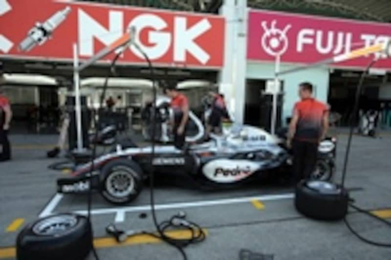 | 鈴鹿のピット前で作業をするマクラーレン・メルセデスのピットクルー。 (写真提供:鈴鹿サーキット) |