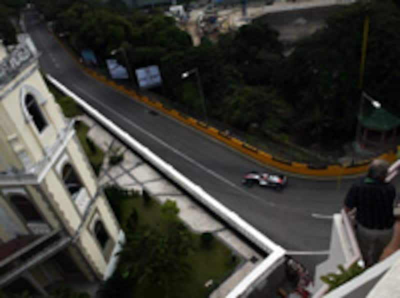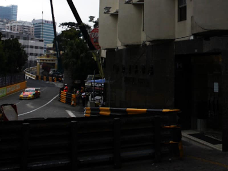 | 突然現れるレーシングコース。周りはごく普通のいつも通りのマカオだ。 (写真:Yoshi KITAOKA) |
