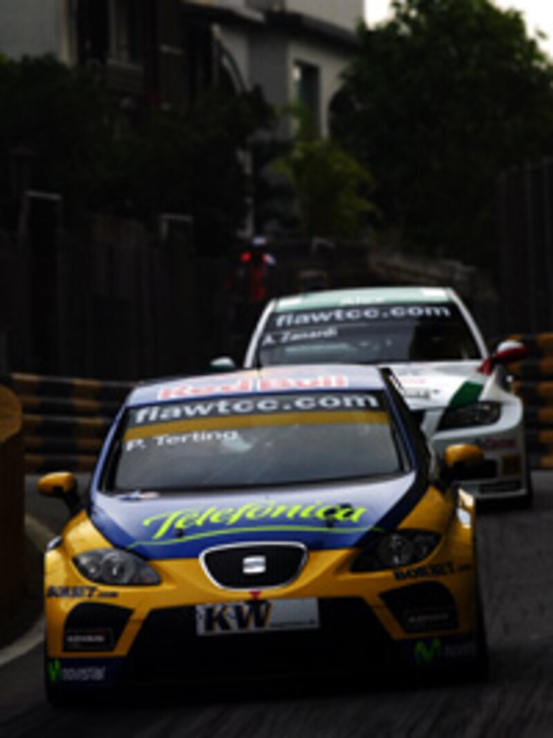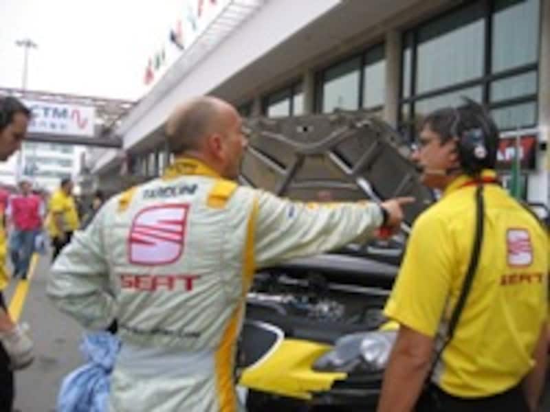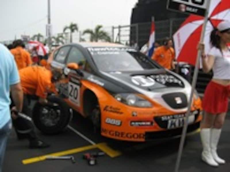 | オレンジのセアトを駆るトム・コロネル。第1レースは7位だったため、フロントロウの2番手スタートとなった。 |