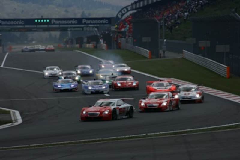 | 晴天の富士スピードウェイで決勝レースがスタート。GT500はホームコースでもあるレクサスSC430が素晴らしいスタートダッシュを見せた。 (写真提供:SUPER GT.net) |