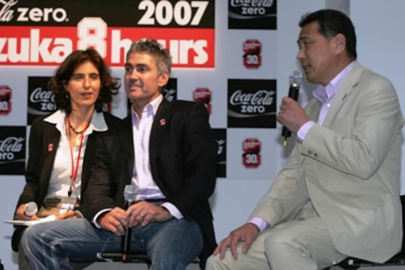 また、記者発表には1988年にコンビを組んで鈴鹿8耐に出場した往年の名ライダー、ミック・ドゥーハン氏と平忠彦氏がゲストとして登場。鈴鹿8耐についてドゥハーン氏は「刻一刻と状況が変わる鈴鹿8耐は、本当に難しいレースだった」と語り、一方の平氏は「本当に、不運が続きましたね」とヤマハのワークスライダーとして鈴鹿8耐優勝までに5年を要したことを振り返った。![]() |