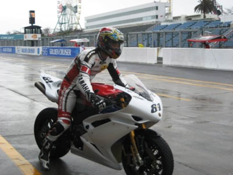 そんなノリックが日本に帰ってきて、全日本ロードレースを戦うことになり、私は時間を割いて雨の鈴鹿で行われたテスト走行を取材した。真っ白なマシンは新しいスタートを印象づけるものだったが、当日のピットにはパテーション等の装飾もなく、ごく一般的なプライベートチームと変わらない雰囲気で、世界を戦ったノリックにとっては少々寂しい光景に映ったものだ。