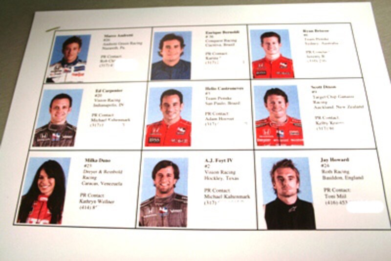 | ドライバーの担当者リスト。ドライバーに取材したい時、関係者にコンタクトを取りたい時は記載されている携帯番号にかけて依頼できる。誰かを介して紹介されなければ取材を申し込みづらい日本とは大違い!実にオープンだ。 【写真:辻野ヒロシ】 |