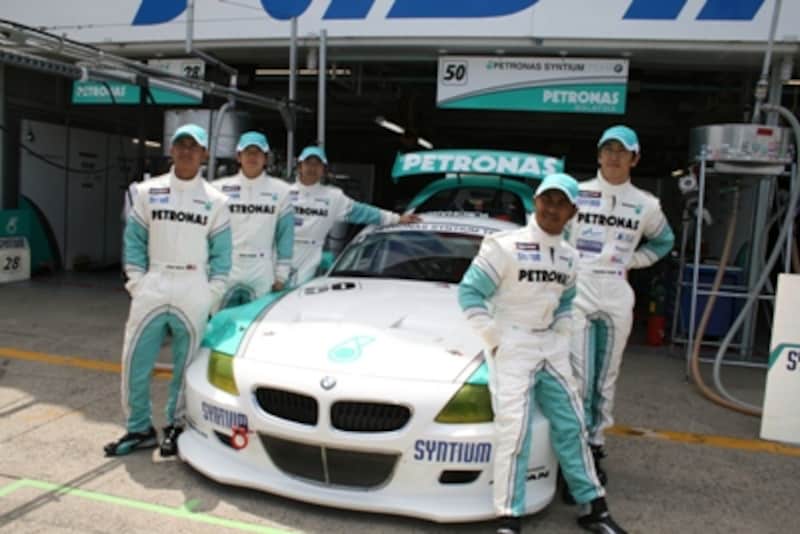 2008年のスーパー耐久の主役はやはりこの車、マレーシア資本のチームが昨年から持ち込んでいる「BMW Z4Mクーペ」。今年は2台体制を敷き、どちらもマレーシアの石油会社「ペトロマス」をメインスポンサーに付け、名門ガレージのシフトにメンテナンスを任せている。ドライバーはマレーシア人のファリーク・ハイルマンに加えて、谷口信輝、片岡龍也、柳田真孝などの日本のトップドライバーがステアリングを握る。とにかく、スピードでも華やかさでも他を全く寄せ付けないのが今年の「BMW Z4Mクーペ」である。