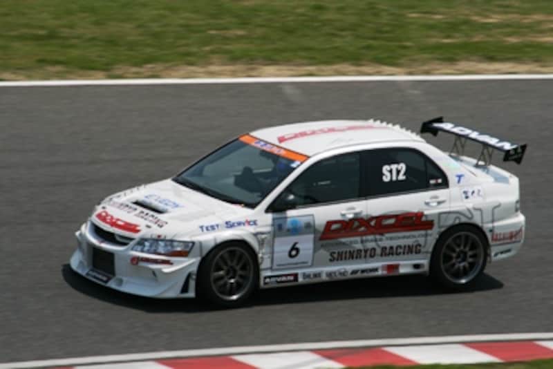| シンリョウレーシンチームのエボIX。開幕戦から3戦連続ポールを獲得したものの不運なレースが続いてランキング5位に甘んじている。 【写真:辻野ヒロシ】 |