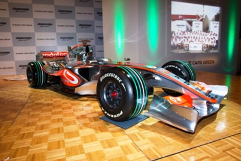 | マクラーレンのマシンに装着されているのは柔らかめのタイヤであることを表す、白のラインが1本入ったソフトタイヤ。 【写真提供:Bridgestone Motorsport】 |