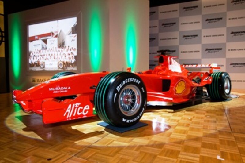 | フェラーリのマシンに装着されているのはグリーンのライン4本の堅めのタイヤ(日本GPではミディアムコンパウンド)。 【写真提供:Bridgestone Motorsport】 |