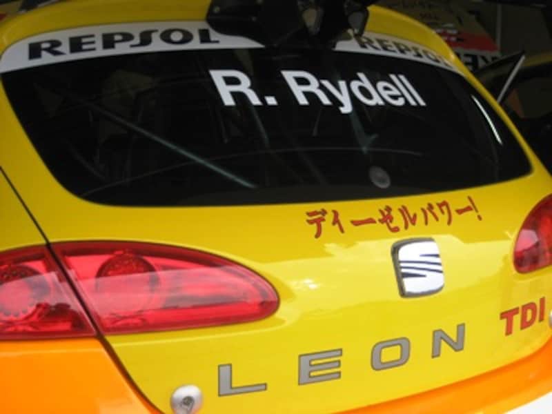 | リカルド・リデルのマシンに書かれた「ディーゼルパワー!」の日本語。セアトにとって日本は全くマーケットに入っていないが、セアトはこういった演出も欠かさない明るいブランドだ。 |