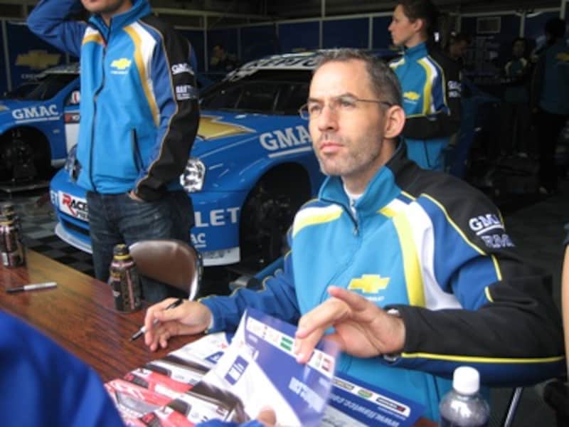 | サイン会でファンと交流するアラン・メニュ。2005年からシボレーで参戦する彼はツーリングカーのスプリントレース歴15年以上という大ベテラン。昨年は7勝をあげたが、今年はリバースグリッドになる第2レースの2勝のみにとどまっている。 |