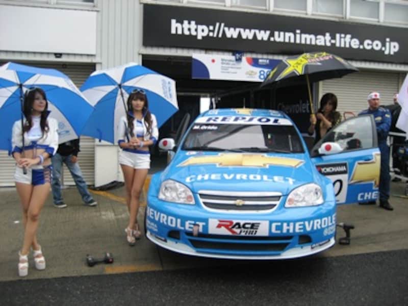 | 織戸学とシボレー・ラセッティ。ワークスチームとは別体制扱いでマシンも2年落ち。岡山での日本ラウンドは納得がいかないものだっただろう。 |