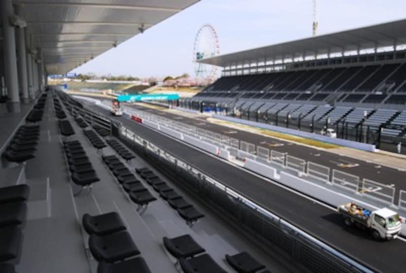 ピットビル最上階となる3階には従来通り屋根付きの観戦スペースが設置された。F1開催時にはVIP向けの「パドッククラブ」の観戦エリアとして利用されるし、国内レースではパドックパスのさらに上級なチケットとしてホスピタリティテラス専用のチケットが売りだされることもある。ちなみに4月18日・19日に開催される「KEIHIN SUZUKA 2&4レース」ではホスピタリティテラス・チケットは観戦券別途必要で18000円(税込)。3階にもテラス席があるし、パドック及びBエリア(第1、2コーナースタンド)にも入場可能だ。
