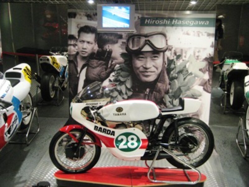 | 「モーターサイクルグランプリ」のコーナーには67年の初代ウイナーである日本人、長谷川弘のマシン(ヤマハ)が手厚い扱いで展示されている。日本人には馴染みが薄いマカオの「モーターサイクルグランプリ」だが、毎年土曜日に決勝レースが開催されている。近年は英国スーパーバイク選手権に参戦しながらマン島TTレースに参戦するキレた英国人ライダーが優勝することが多いが、日本人からまたこういったレースに挑戦するライダーが登場して欲しいものだ。 |