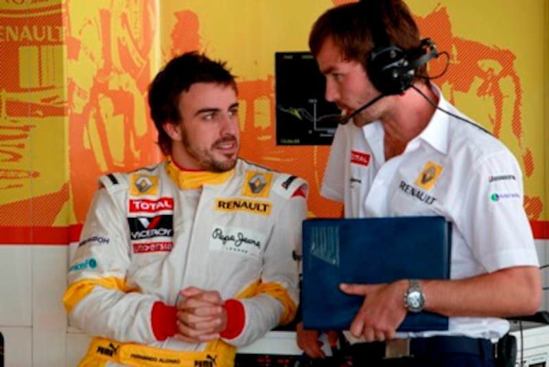 | フェラーリ入りが発表になり、上機嫌だったアロンソ。今のF1でカリスマ性にあふれチャンピオンとしてのオーラがあるのは彼くらいである。フェラーリでどんな活躍を見せるか、それもF1の未来を左右するファクターだ。 【写真提供:Bridgestone Motorsport】 |