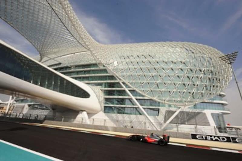 | 華やかに開催された「アブダビGP」のヤス・マリーナ・サーキット。石油産油国は今後、ヨーロッパのバカンス客を相手にしたリゾートに力を入れ観光国としての発展を狙う。日本への就航を予定しているアブダビのエティハド航空もリゾートでのレース開催も仕掛け人はヨーロッパ人である。 【写真提供:Bridgestone Motorsport】 |