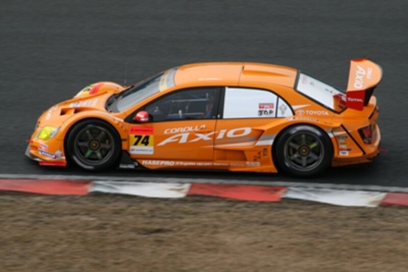 | 毎年登場する個性豊かなマシンもGTの魅力。写真は今年登場したカローラ・アクシオ。エンジンはミッドシップという怪物だ。自由な発想でマシンが作れる所もGTの良い所。 |