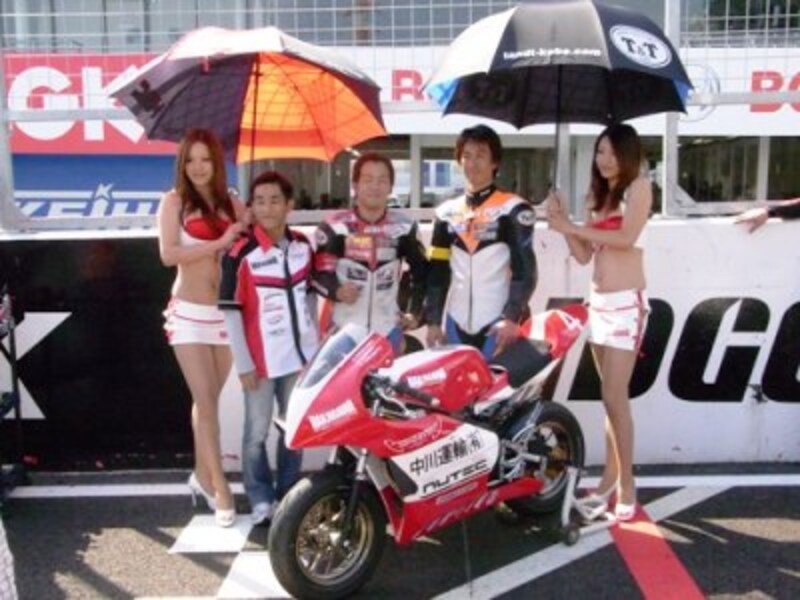 | ミニモト4耐のOPENクラスに出場し、優勝したチーム。 グリッドは和やかな雰囲気に満ちている。 |