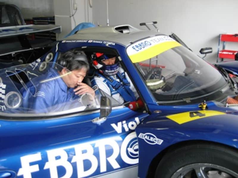 | エンジニアとセッティングについて話をするドライバー。経験豊富なドライバーからのコメントはチームにとっても大きな財産となる。 |