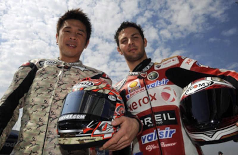| ドゥカティのワークスライダー芳賀紀行(左) 【写真提供:www.worldsbk.com】 |