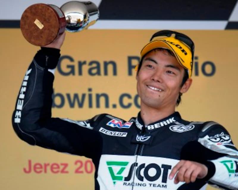 国内のトップライダーもご紹介しましょう。取り上げたいのは、大ベテランの伊藤真一(いとう・しんいち)です。「スーパー耐久」にも参戦して優勝したりしていますから、4輪レースファンにもお馴染みかと思いますが、伊藤真一のロードレース歴はなんと25年。世界選手権のフル参戦経験も4年あり、世界選手権でも6度の表彰台経験があります(最高位は2位)。さらに伊藤真一は世界選手権を離れてからも「全日本ロードレース」に参戦を続け、4度の全日本チャンピオンに輝いた実績の持ち主です。また、全くブレの無い安定したライディングで叩き出す「予選アタック」は一級品。「鈴鹿8耐」では7度の最多ポールポジション記録を持っています。
