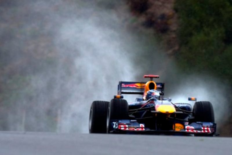 | 雨の中を走るベッテル 【写真提供:Bridgestone Motorsport】 |