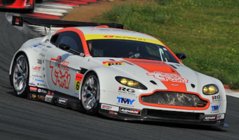 | 今年GT300クラスに登場したアストンマーチンは第3戦富士で3位表彰台に登壇。ドライバーは歌手としても活動する吉本大樹と、かつてAll Aboutモータースポーツの前任ガイドだった松田秀士のコンビ。 【写真提供:SUPER GT.net】 |