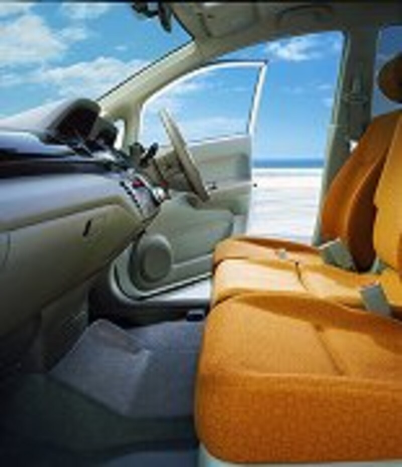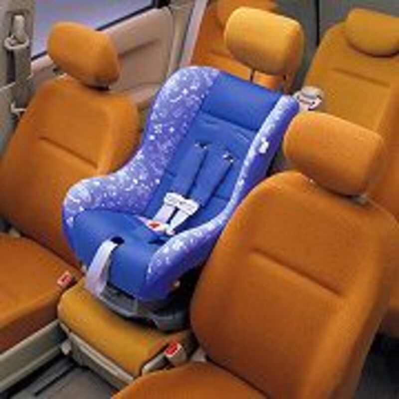 さりとてエディックスの場合は、前3人乗りである。小さい子供は両親のあいだに座らせられるので、後ろの席までウォークする必要がない。チャイルドシートだって、ご覧のとおりしっかり装着できるからこれならベビーも安心。しかも前が見られるからすっごいクルマ好きの子供に育ったりして。前席3人、ちょっと異次元ワールドなのだが、乗ってみる価値は十分ありとみた。