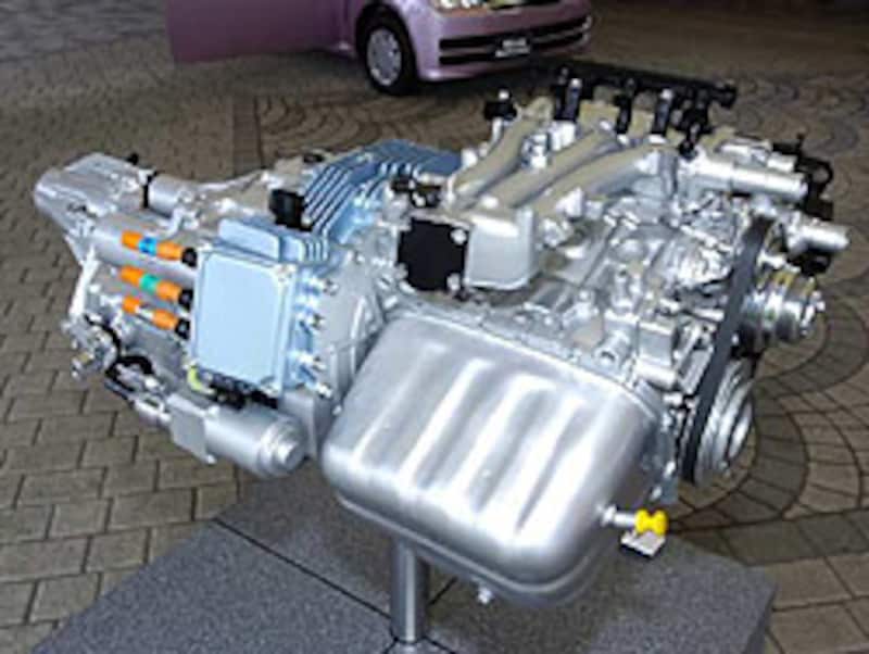 | エスティマにも採用されている薄型モーターをエンジンに組み合わせている |