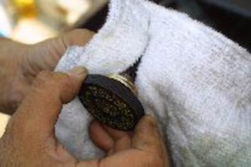 樹脂タンクで側面にレベル表示があるときは内部を透かし見ることでチェックできるが、金属タンクはキャップ裏にゲージが固定されており、ひと手間かかる。まずウエスを用意し、キャップを外してレベルゲージの先端に付着したフルードをウエスできれいに拭き取ってやる。3.拭き取ったら一旦戻し、再度引き抜く