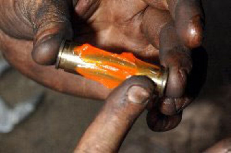 ピストン頭部にピストンブーツをはめ、外周のつばをシリンダー上端の溝にキッチリはめ込んでやる。この際、ブーツを傷付けないよう慎重に作業を進める必要がある。11.スライドピンをセットする