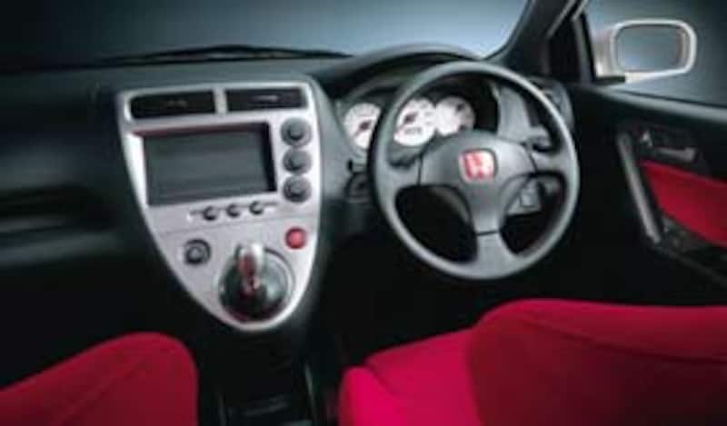 さて、例のシフトレバーである。これは表現が実に難しい部分。というのもまず、旧型よりは確実に好ましい感触を持つ。旧型はレバーも長く位置もやや遠く、操作感は意外にクニャっとしていた。そこからすると全ての面で上回っている。ただし同じ6速MTを持ちながらもフロアにシフトが置かれるインテRと比べるとどうかというと、シフトレバーを操作し、レバーがゲートに入るカッチリした感触の高さではインテRにかなわない。シフトストロークそのものはシビック・タイプRの方が極めて短いわけだが、その分シフトした時の手応えを味わう暇がない。アッという間に操作が完了してしまうのだ。ここがややこしい部分で、まさにアッという間の操作で済むだけに、シフトの操作性自体は明らかにシビック・タイプRのそれが優れている。さらにこのシフトは実際に走らせた時に実に絶妙な位置にあると分かる。ステアリングから手を離してスグの位置にあるので、シフト操作そのものをほとんど意識することがない。これはかなり新しい感覚ともいえる。インパネシフトをまとめてみると、旧型よりは操作性/操作感ともに断然良い。が操作感で言えばインテR、操作性で言えばシビックRという感じだろう。
