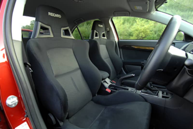 | RECARO社との共同開発により専用にチューニングされたバケットタイプのフロントシートを装備。生地にはスエードの質感に近いニットを採用。本革とグランリュクス(スエード調人工皮革)を組み合わせたレザーコンビネーション仕様もオプションで選べる |