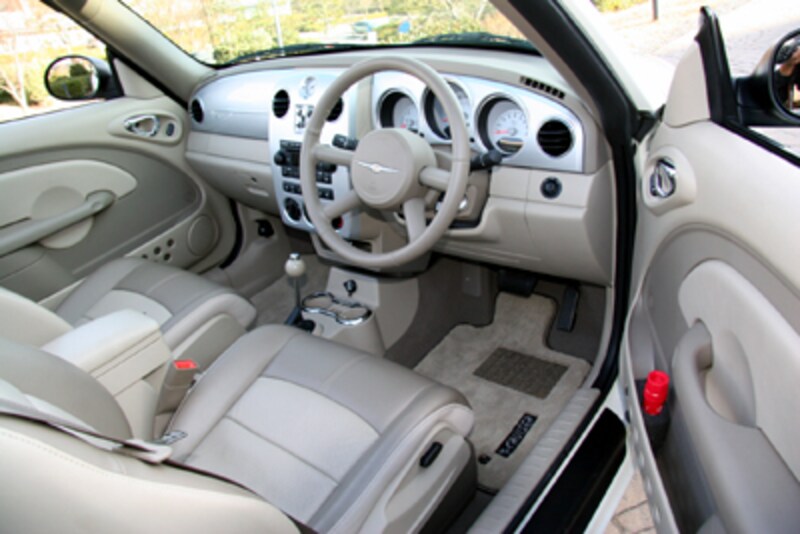 ちなみに旧型ネオンも、モデル末期には乗り心地もフットワークも劇的に洗練されていましたが、その技術をそのままPTクルーザーにも採り入れたという感じです。とくにクローズドモデルがよくなったこともあり、それと比べるとカブリオは、さすがに走りの面では不利な部分もありますが、このスタイルとオープンエアモータリングを楽しめることを考えれば、許せるのではと思います。