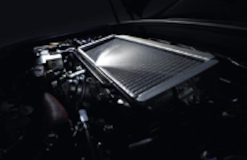 | 軸受け部分にボールベアリングを採用したツインスクロールターボを搭載。最高出力227kW(308ps)/6400rpm、最大トルク422Nm(43.0kgm)/4400rpmというエンジンスペックはベース車と共通 | |