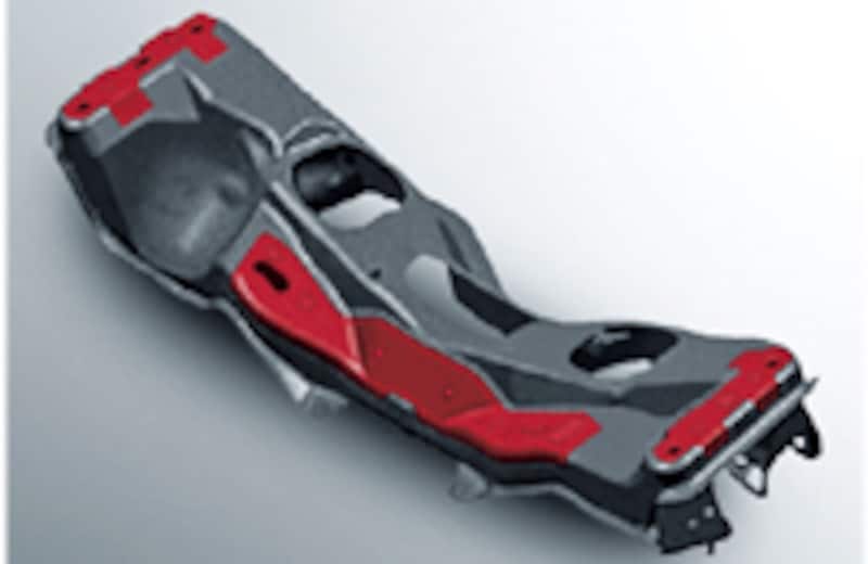 | アルミ製のフロントフード、小型バッテリー、軽量タイプの専用18インチ鋳造アルミホイールなどを採用。スペアタイヤを廃止しパンク修理キットとするなど、車両全体での軽量化を達成 | |