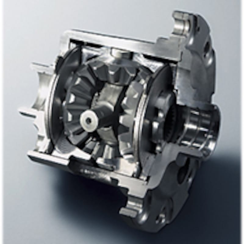 | リアデファレンシャルギヤに機械式LSDを採用。ブレンボ製ブレーキのキャリパーがゴールド塗装とされた | |