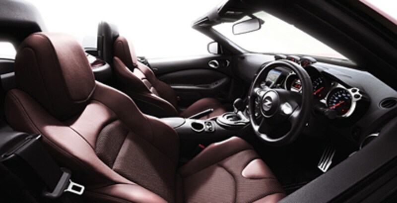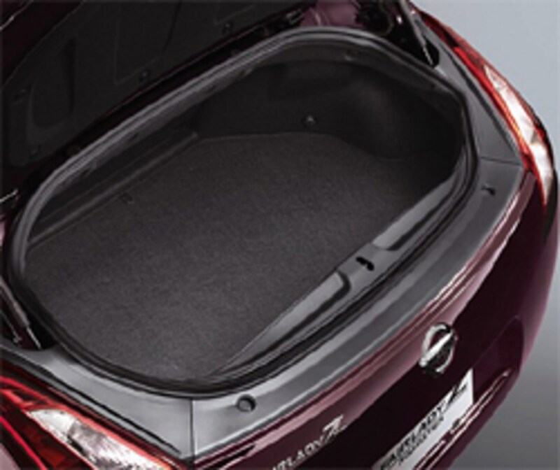 9インチゴルフバッグを1個、またはAサイズスーツケース1個が搭載可能なトランクスペースシャシーについては、Z33に対して、100mmもホイールベースが短縮し、トレッド拡大が図られたのもやはりクーペと同じ。走りについて、Z33ロードスターからどう変わったかよりも、Z34クーペとの違いが気になるところですが、オープントップ化に合わせて、ドアやトランク開口部を効率よく補強し、高剛性かつ高度な衝突安全性を両立した車体構造としたにもかかわらず、車両重量は50kgにとどめられたところもポイントです。安全性については、SRSドアマウントカーテンエアバッグを採用した点が特徴です。