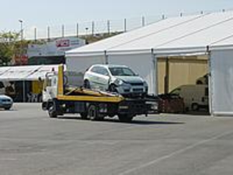 1時過ぎにサーキット到着。あれだけあった試乗車がすっかりいない。みんなトリノへ戻しているのだそう。見渡すとやっぱり居た居た、クラッシュした車。うーん、全損だなあ。