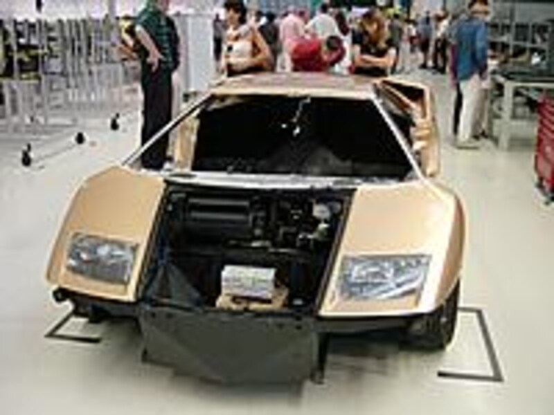 工場のラインでは、ディアブロの最終車両とムルシエラゴの1号車が仲良く前後に並んで完成の時を待っていました。新型車もディアブロとほとんど変わらない行程で作られているようです。