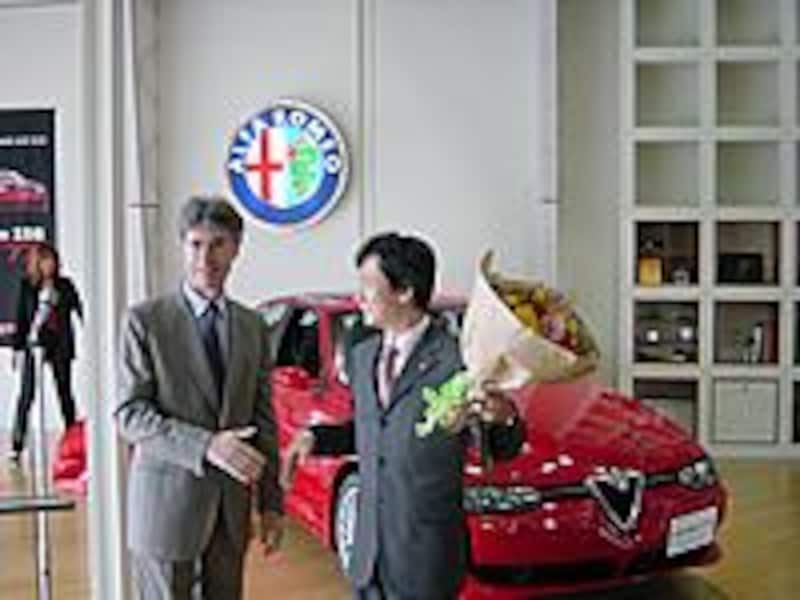 昨年のフランクフルトショウ期間中に開催された、アルファ156GTA生産1号車のネットオークション。落札したのは日本人医師の仙石さん。このほど、その1号車の納車式が、東京台場にある正規ディーラー、アレーゼお台場にて行われた。