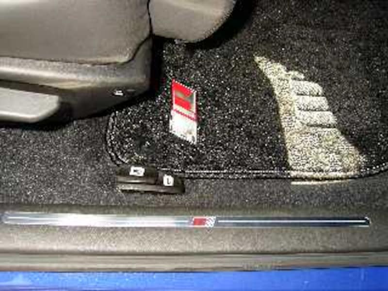 ドアを開けると、小さなスカッフプレートが追加されているのに気づきます。TIエンブレムがデザインされていて、演出としてはグッド。フロアマットにもTIエンブレムが入っています。