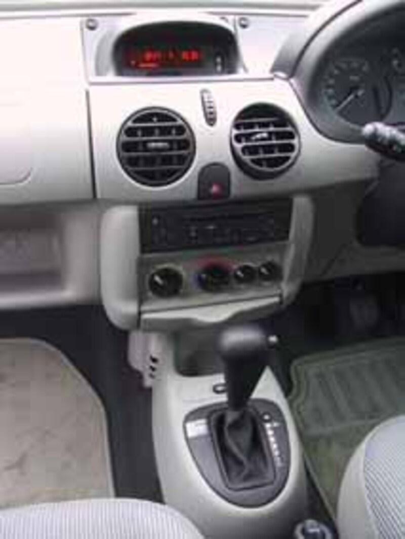 オーディオは最近の日本仕様ルノーに装着されているものと同じで、操作部分と表示部分が分かれている。表示は空調の吹き出し口の上、時計のとなりになる。ATセレクターはP-R-N-D-2-1の6ポジションで、3速と4速の切り替えはレバー脇の小さいプッシュボタンによる。ルーテシアと同じで、日本車に似た方式だ。