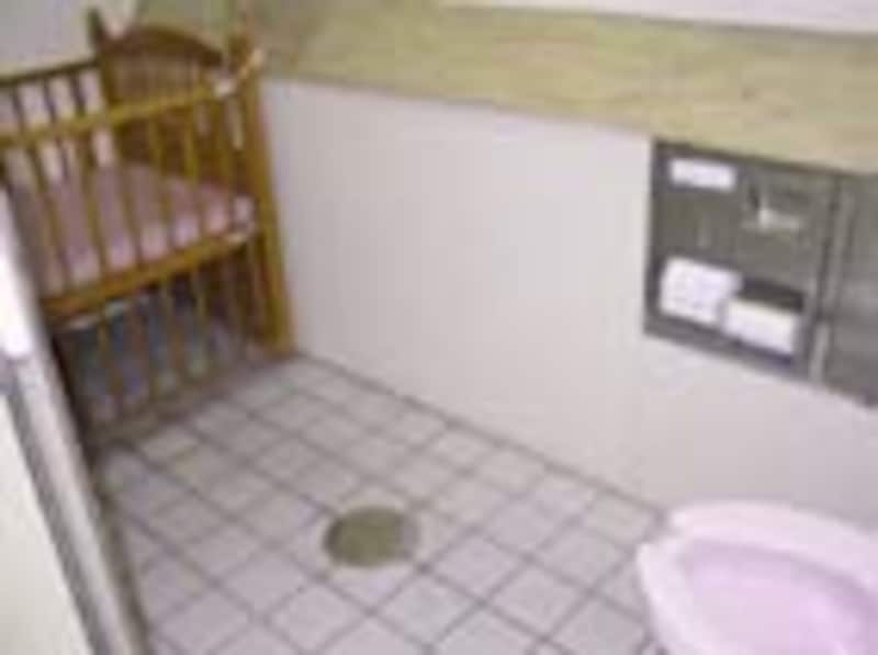 また写真のようにベットの柵はヒモで固定(動かせるかもしれませんが、子供を抱いた状態では操作できなかった)されていたので、オムツ替えもやりづらい。残念ながら、トイレはあまり使いやすい印象ではなかったです。