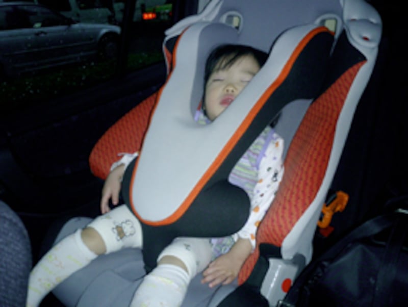 2日もすると慣れてきたのですが、やっぱり顔が動かせず景色が見えないせいかつまらなそう。で、最後には眠ってしまうというパターンがほとんどでした。子供が眠ってしまった時は、逆に首がグラつかないから変な姿勢になることもなく、常にきちんとした姿勢で座っていてくれるので、運転している大人からみるととても安心感がありました。