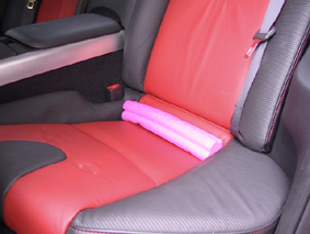 今回は長期試乗ということで、まず私が最初に取り組んだのが、チャイルドシート取り付けのためのアンコ造り。RX-8のもう一つの顔でも話したように、RX-8の後席座面は傾斜がきついために、そのままチャイルドシートを取り付けると、かなり寝そべった格好になり、この姿勢だと子供はとてもグズリやすくなってしまいます(これはどのクルマでもそうなんですが)。