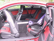 さて我が子がRX-8に乗り、最初に訴えたことは“助手席のシートを倒して!”ということでした。そうRX-8の後席の欠点に視界の狭さがあります。大人が座っても、足元は狭くないのに視覚的にはかなり圧迫感を感じるほど。子供ならなおさらそう感じるようです。しかも窓は小さく、上下開閉もしない。と言っても、チャイルドシートに座った子供は、窓より後ろに位置してしまうので、現実にはCピラーの真横に居て、我が子の場合は太いCピラーに書かれたエアバックマークをよく、カリカリ指でなぞって遊んでいました。